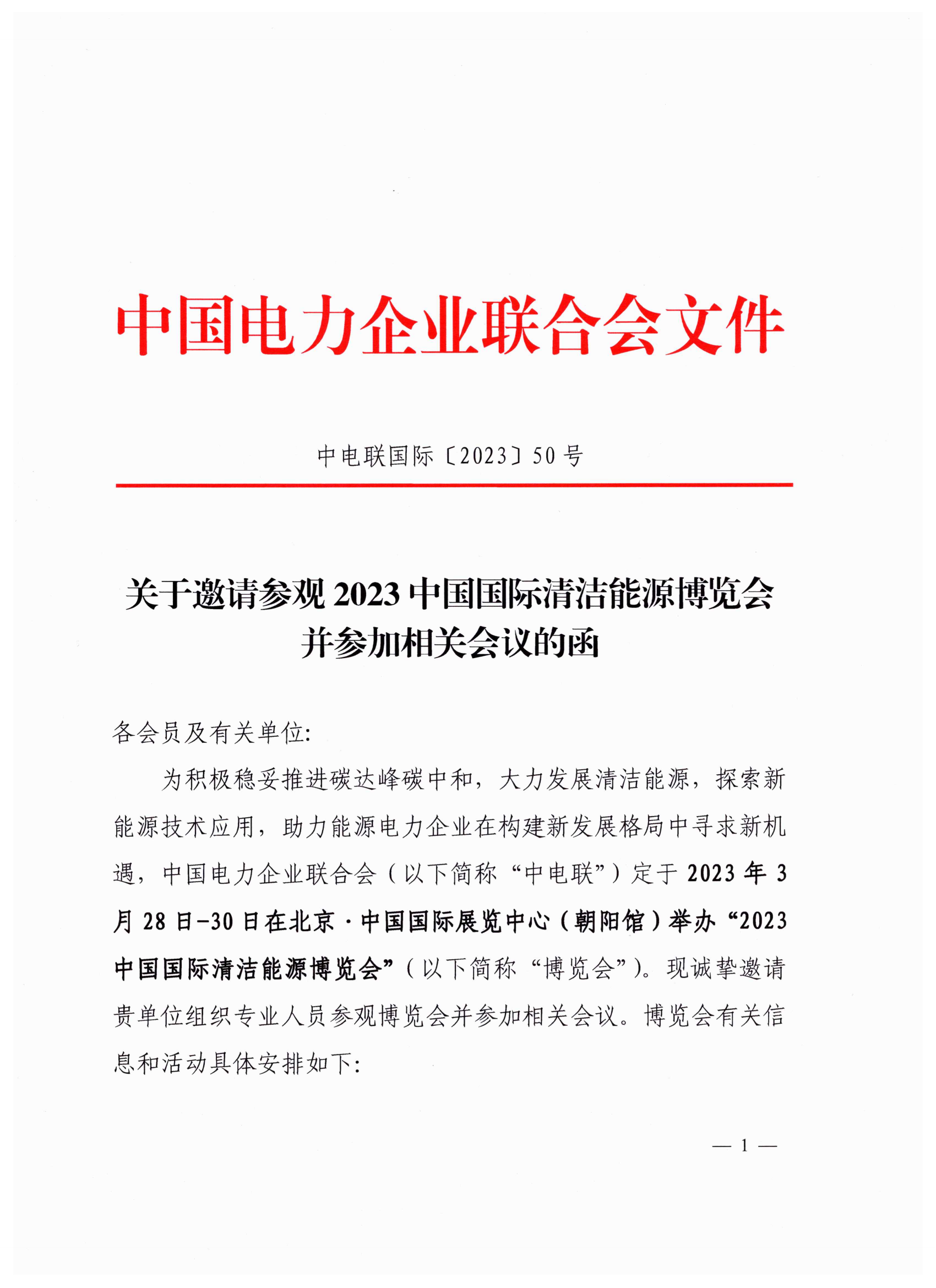 中电联关于邀请参观2023中国国际清洁能源博览会并参加相关会议的函